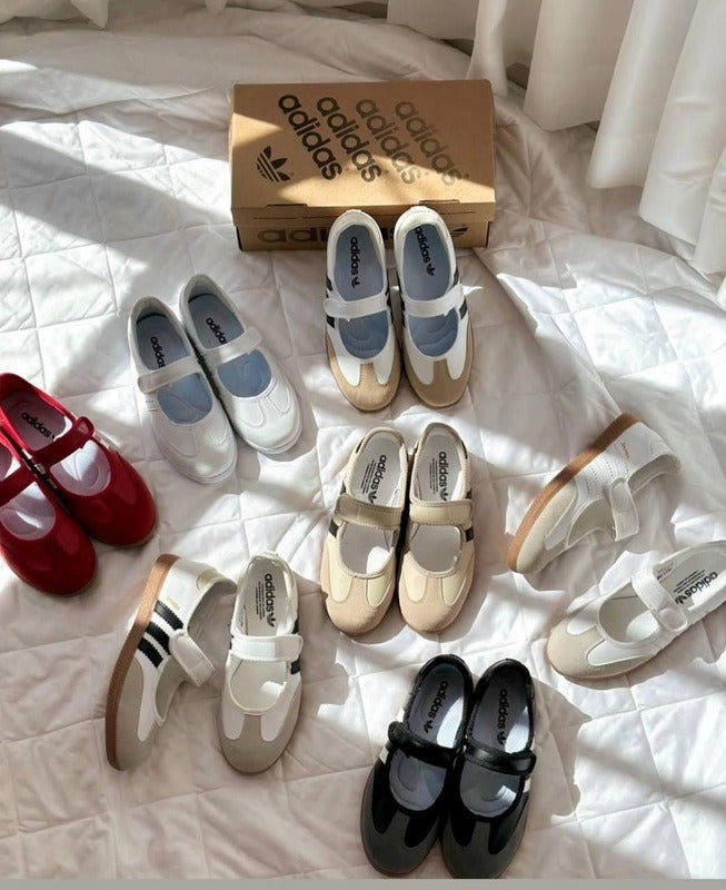 a clean, modern twist on the legendary Samba heritage.Designed with a smooth cream upper, soft suede toe overlays,and bold black 3-Stripes, it blends retro football DNAwith a fresh, minimalist Mary Jane aesthetic. Lightweight, versatile, and effortlessly stylish — this pair brings confidence and comfort to every step.