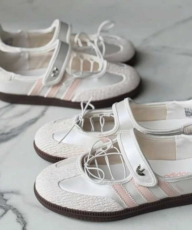 Step up your style with the Adidas Samba Ballet “White Pink” — a soft, modern twist on the legendary Samba heritage. Designed with a smooth white upper, metallic silver panels, and pastel pink 3-Stripes, it blends retro football DNA with a sleek, ballet-inspired Mary Jane aesthetic. Lightweight, feminine, and effortlessly stylish — this pair delivers comfort, stability, and everyday confidence.